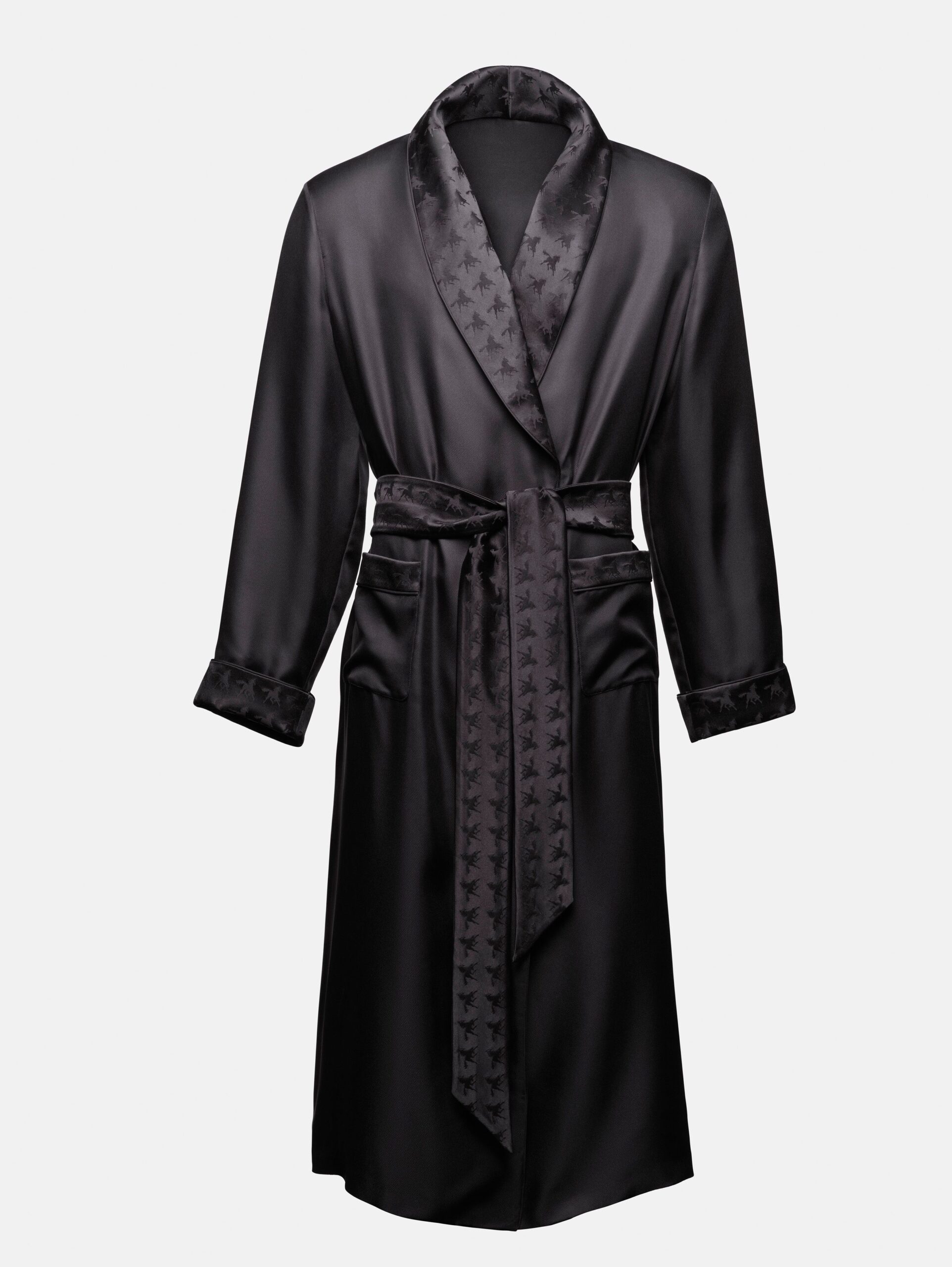 تُعدّ أثواب الحرير الفاخرة الخيار الأمثل للعناية الشخصية. ويوفّر هذا الرداء المتألّق بنقشة المونوغرام أقصى درجات الراحة والاسترخاء بعد يوم عمل طويل، حيث يتميز بتصميم متوسط الطول من الحرير الطبيعي بالكامل ليتيح قطعةً رائعةً يمكن ارتداؤها بكل تناغم مع البيجامات. وتم تصميم الجيبين الأماميين والياقة والحزام من الساتان المزين بشعار العلامة على شكل حصان.
