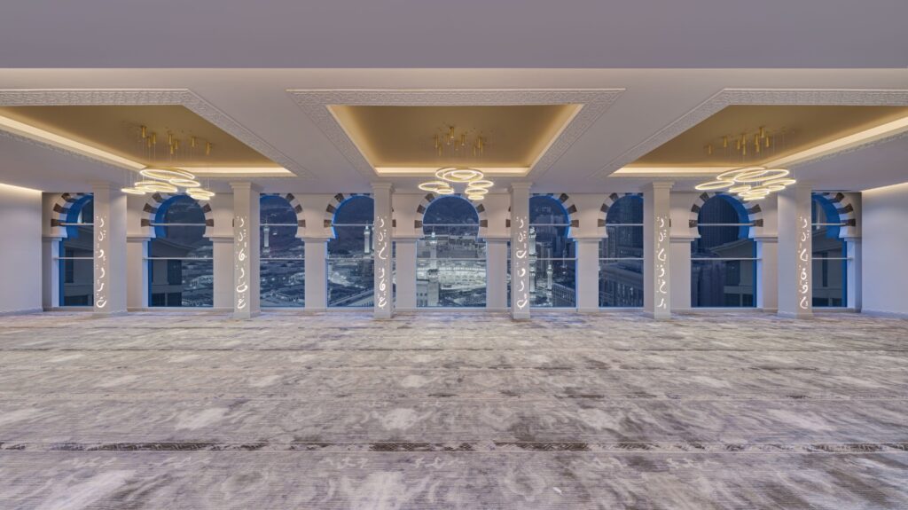 ويركز تصميم المصلى على أعلى معايير التميز في جميع جوانبه، بما يعكس الأسلوب المعماري الفريد للفندق. ويتيح موقع المصلى المذهل للضيوف الاستمتاع بالإطلالات البانورامية على المعالم الدينية في مكة المكرمة، بما فيها المسجد الحرام والكعبة المشرفة وغيرها من معالم المدينة التي تنبض بالحياة خلال موسم العمرة والحج.