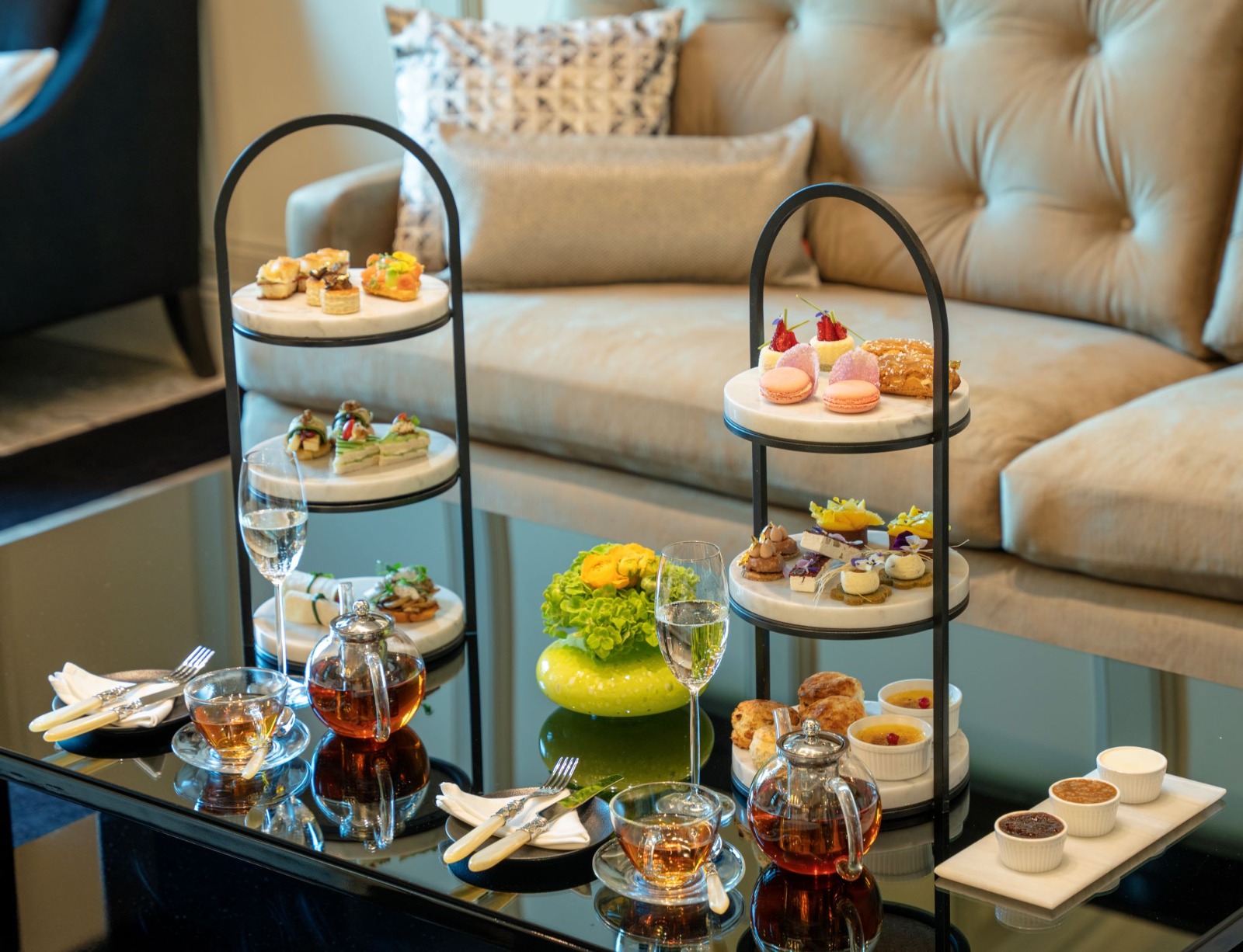 ويمكن للضيوف بدء تجربتهم مع إكلير السلمون المكوّن من الخيار المقرمش والأفوكادو الكريمي ورشة من قشر الليمون؛ يليها تذوق جبنة الحلوم المشوية مع الكوسا الطرية والجوز المخلل، والتي تُقدم مع الخبز الطازج وصلصة البيستو. كما يدعو الفندق ضيوفه لتجربة فوندو الجبن الفاخر المصنوع من جبن جروييه المذابة، والذي يتكامل مع تابيناد الكمأة السوداء. كما يتيح التعاون لعشاق الدسم تجربة لحم البريزولا مع أصابع الهليون الطرية والخردل والجبن الكريمي، والمحشوة جميعها داخل خبز فوكاشيا الرقيق. ويطيب ختام تجربة شاي ما بعد الظهيرة مع الحلويات، حيث يمكن للضيوف الاستمتاع بكعكات سكونز البريطانية التقليدية إلى جانب تشكيلة من الحلويات العربية وماكرون الفراولة اللذيذ، وغيرها من الحلويات الشهية مقابل 250 ريال سعودي فقط للشخص الواحد. كما يتيح التعاون للضيوف ترقية تجربتهم مع زجاجة من المشروب الفوار مقابل 50 ريال سعودي فقط.