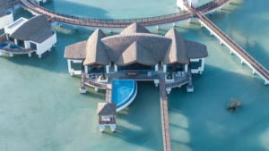 أمّا فلل المنتجع الكائنة فوق المياه والمزوّدة بمسبح، فتُعتبر الأولى من نوعها في رأس الخيمة وتعكس جوهر الفخامة المستوحاة من