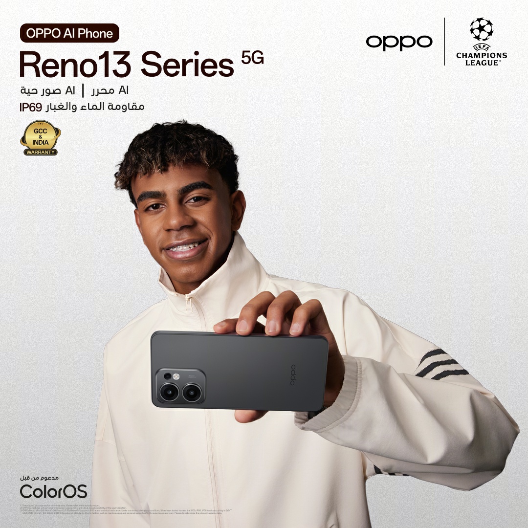 وإلى جانب التصميم الأنيق وقدرات الذكاء الاصطناعي القوية، تأتي سلسلة Reno13 بأربعة ألوان نابضة بالحياة، يتميز كل منها بنفس اللمسات الجمالية المبتكرة لسلسلة Reno13 في شكل أنحف وأكثر رشاقة. ويعد كل من Reno 13 5G وReno13 F 5G خبراء في التصوير بالذكاء الاصطناعي، وهما مزودان بميزات رائدة بما في ذلك توظيف الذكاء الاصطناعي لانتاج الصور الحية AI Livephoto وتحسين الوضوح AI Clarity Enhancer. وهناك أيضًا إمكانية مذهلة للتصوير تحت الماء بفضل حماية متميزة من الماء والغبار بمعيار IP69، وبطارية كبيرة بسعة 5800 مللي أمبير في الساعة لهاتف Reno 13 F 5G وبطارية 5600 مللي أمبير في الساعة لهاتف Reno 13 5G، ونظام تبريد متعدد بالذكاء الاصطناعي، وتقنية AI HyperBoost. وتجعل هذه الميزات من Reno13 F 5G خيارًا بارزًا لأي شخص يبحث عن هاتف ذكي عالي القيمة بالذكاء الاصطناعي.