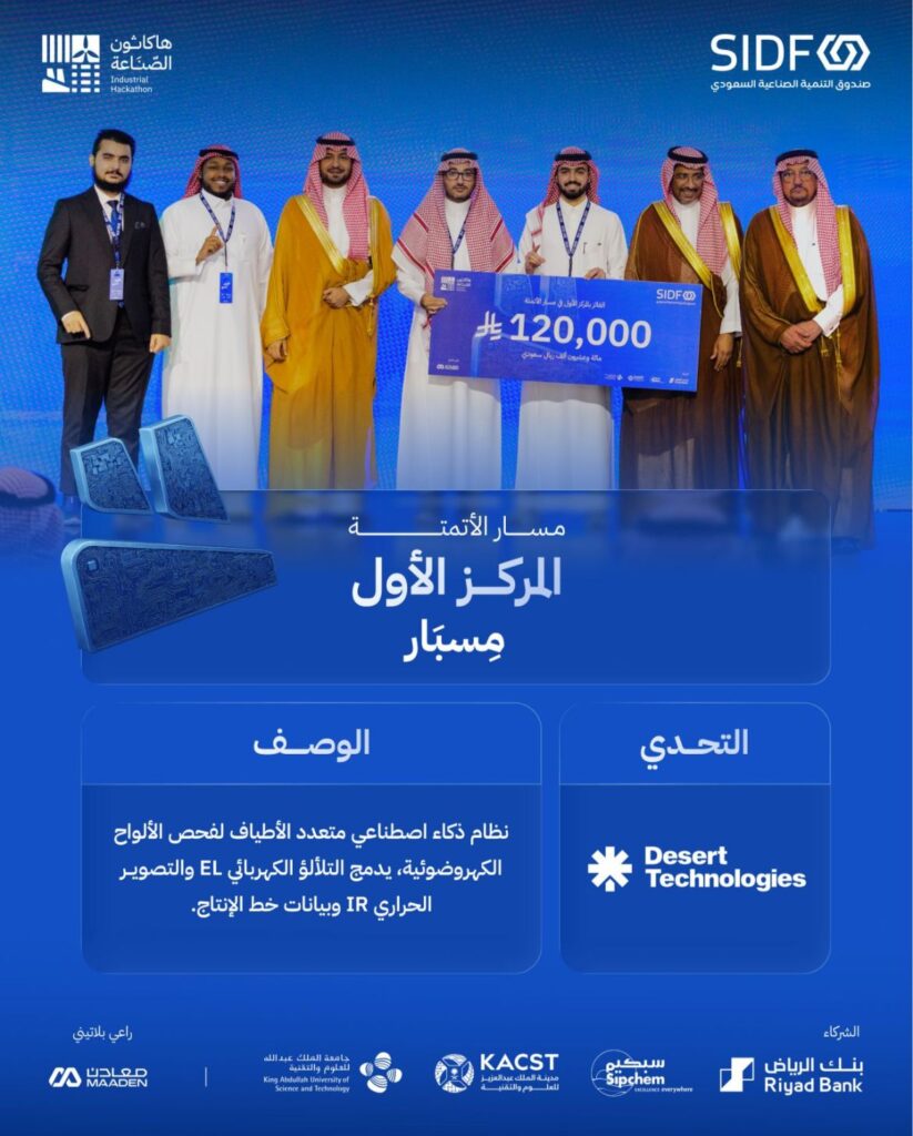 وجاء هذا الإنجاز المتميز عن التحدي التقني الذي تقدّمت به شركة تكنولوجيات الصحراء (Desert Technologies)، الرائدة عالميًا في تقنيات الطاقة الشمسية وحلول الطاقة المتجددة وعضو برنامج “صُنع في السعودية”.