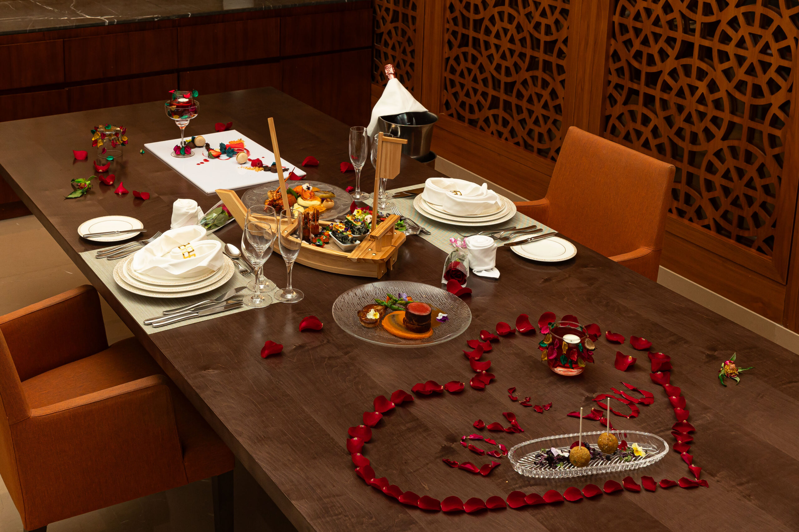 في يوم 14 فبراير ابتداءً من الساعة السابعة مساءً، ينتظركم بوفيه خاص بمناسبة يوم الحب يضمّ تشكيلة مختارة من الأطباق العالمية الفاخرة، ومحطات الطهي الحيّة، ومجموعة من الحلويات المميزة التي تضفي على الأمسية طابعًا فريدًا لا يُنسى.