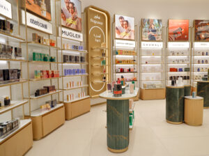 At the heart of the flagship is a service-led concept that places consultation and personalisation at the centre of the experience. Visitors are introduced to five dedicated service pillars designed to meet different beauty needs and occasions: skin analysis, fragrance experiences, makeup services, men’s grooming and curated gifting support.