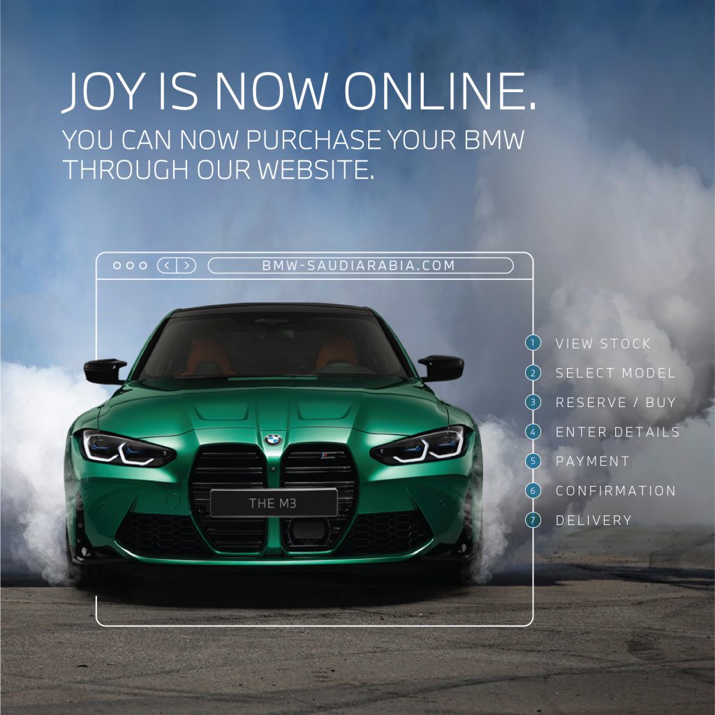 ويضمن الموقع الالكتروني سهل الاستخدام، للعملاء في المملكة العربية السعودية أفضل طريقة لشراء سيارات BMW وMINI. ويمكن للمستخدمين عن طريق هذه المنصة التحقق من توفر سيارات BMW وMINI الجديدة، بالإضافة إلى سيارة MINI Next والطرازات ضمن BMW Premium Selection*، وشراء السيارة أو حجزها بكل سهولة.