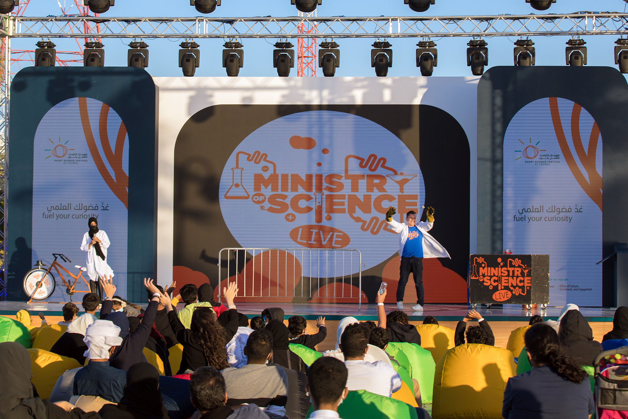 كما ضم مهرجان العلوم باقة واسعة من الفعاليات والأنشطة، شملت عدداً من المعارض العلمية، والعروض العلمية المسائية، والتحديات في مجالات العلوم والتكنولوجيا والهندسة والفنون والرياضيات للأطفال، وعرض لمشاريع طلاب الجامعة العلمية، مع التركيز بشكل أساسي على المحاور البحثية الخمس للجامعة، وهي: الغذاء والطاقة والمياه والبيئة والتكنولوجيا الرقمية.