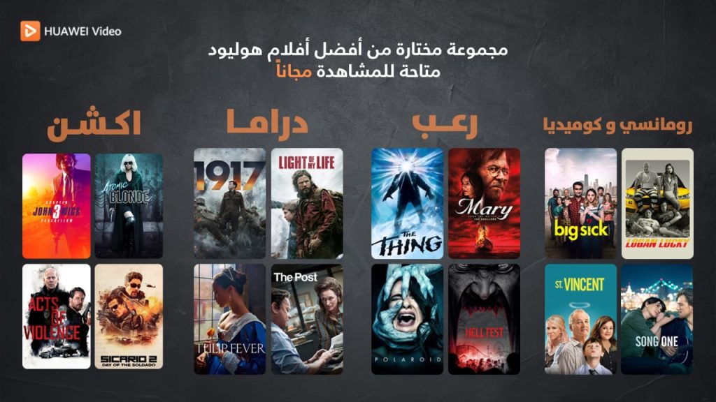 اختر ما يرضيك من باقة أفلام الأكشن والدراما والرعب والرومانسية والكوميديا الاحدث من نوعها والمتوفرة لك ً من HUAWEI Video